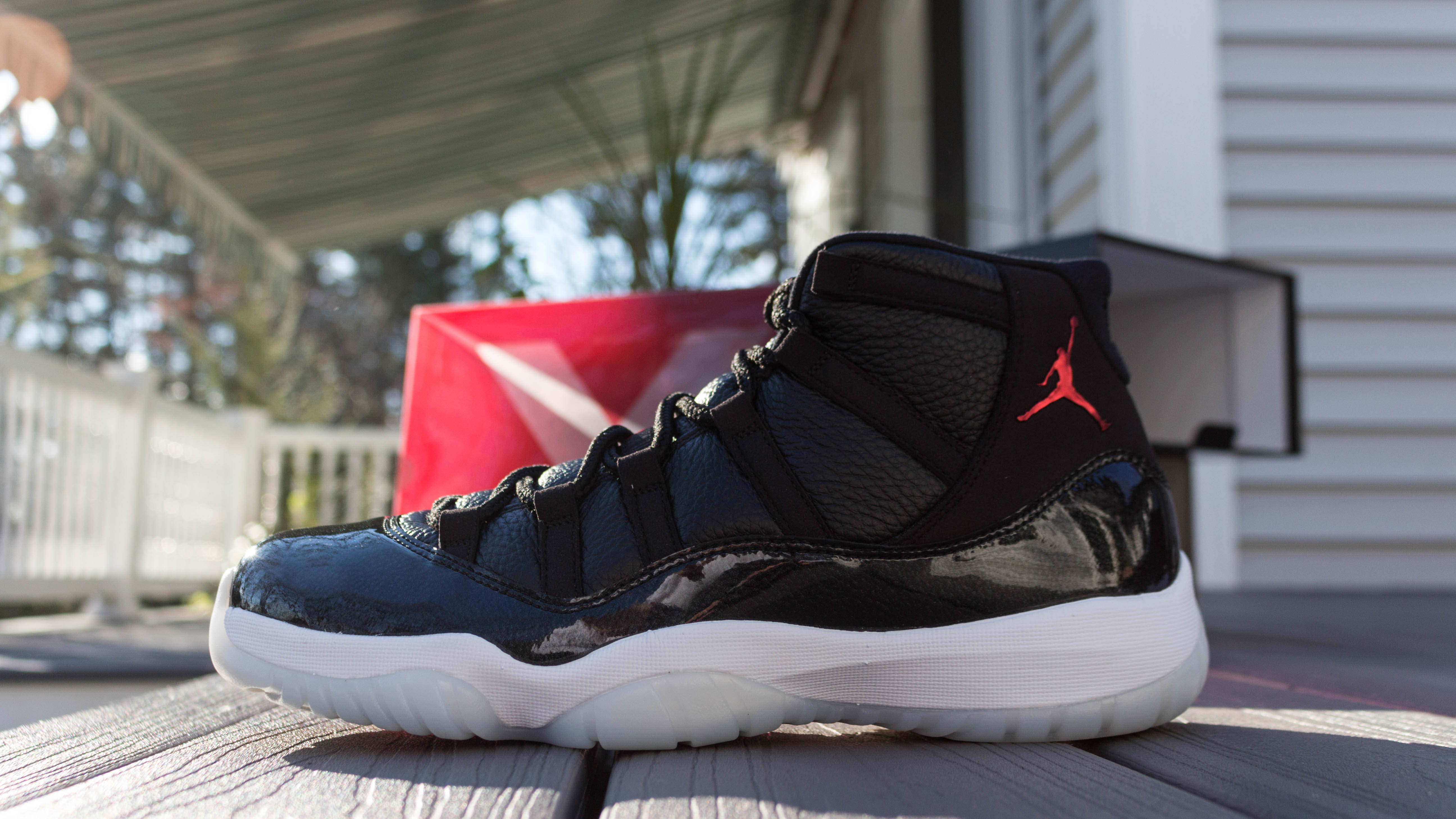 - Streetwear Vibes: Pair your AJ 11 72-10 with baggy cargo pants, a graphic hoodie, and a snapback cap for a casual, streetwear-inspired look. The sleek patent leather and the bold red accents make this combination stand out.